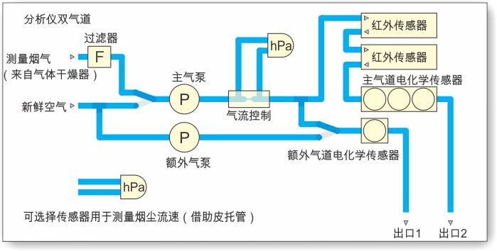 適用情況:不含酸性氣體(如SO2,NO2)的測試;環保部門實地監察的抽檢測試;鍋爐燃燒效率測試。